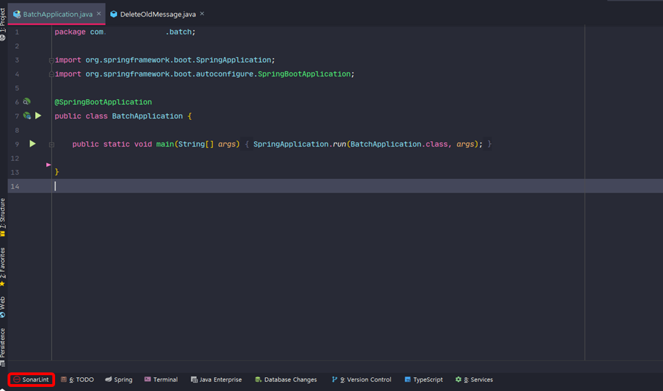 IDE를 재시작하고, IDE 하단을 보면 아래 사진과 같이 SonarLint라는 탭이 새로 생긴것을 확인할 수 있다.