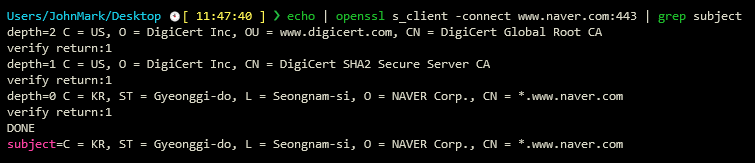 나는 첫번째로 해당 ssl이 어느 사이트를 대상으로 발급되었는지 확인해보고 싶었다. 이런 경우 subject를 확인하면 된다.