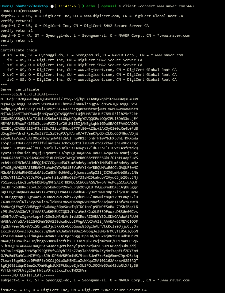 당연히 www.naver.com 도메인을 대상으로 발급이 된 것을 확인할 수 있었다.