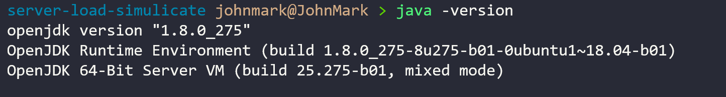 현재 사용하고 있는 자바 버전은 다음과 같이 openJDK 1.8.0_275 버전이다.