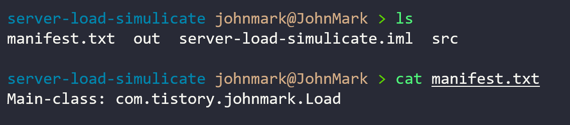 Main-Class: {메인클래스의 경로}를 manifest.txt에 적어주면 된다. 주의할 점은 패키지 경로까지 모두 작성해야 한다는 점이다.