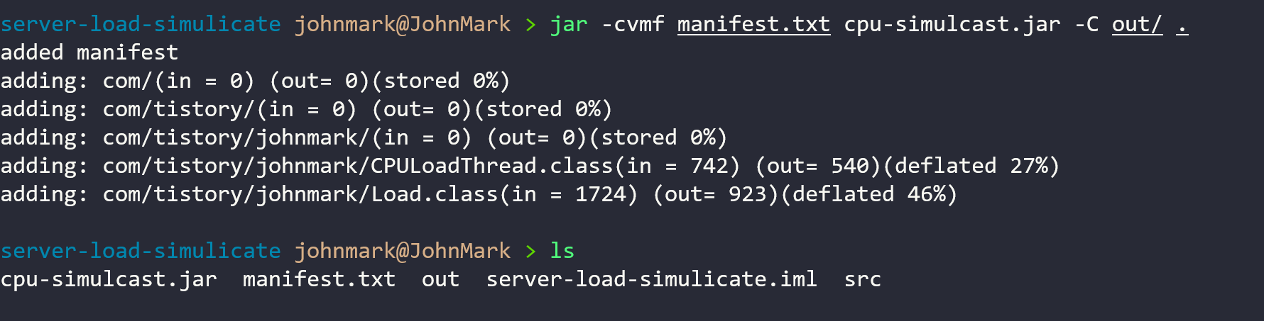 jar 명령어를 통해 cpu-simulcast.jar 파일이 성공적으로 만들어진 것을 확인할 수 있다.