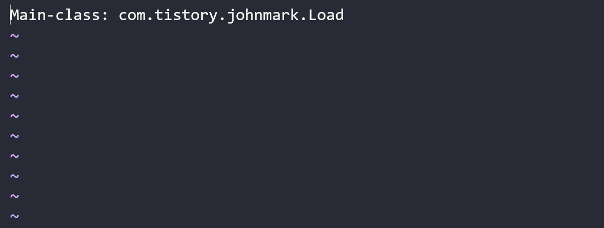 그럼 만들어진 class 파일들을 모두 모으고 실행 가능한 jar 파일로 만들기 위해 가장 먼저 jar파일이 참조할 manifest 파일을 만들어야 한다. 우리는 일단 메인 클래스에 대한 정보를 넣어주면 된다.