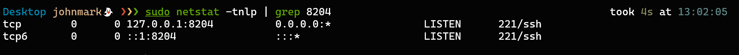 아래와 같이 성공적으로 ssh 프록시 포트가 열린 것을 확인할 수 있다.