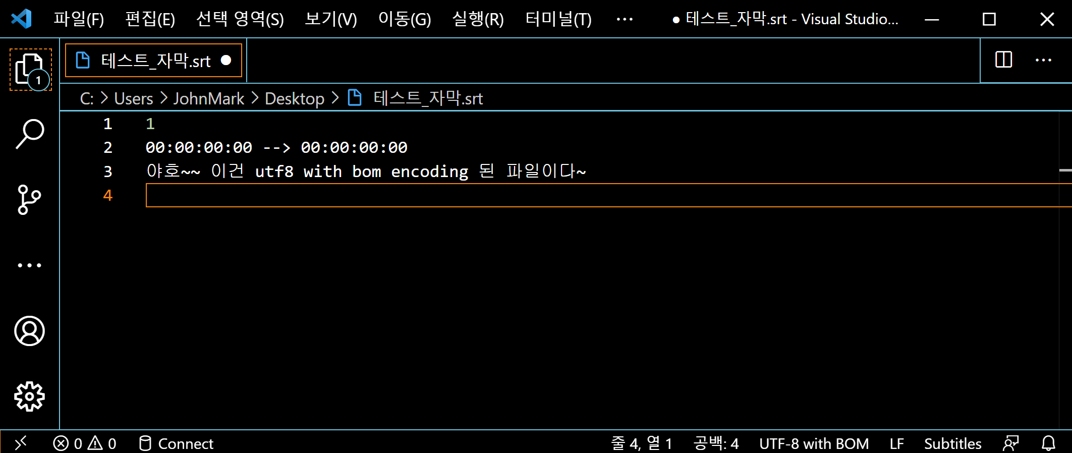 최근 만들고 있는 자막 변환기 파이썬 프로그램을 통해 .srt 파일을 만드는 도중, subtitle editor에서 저장된 .srt 파일이 UTF8 with BOM 형태로 인코딩 되어 저장되는 사실을 알았다.