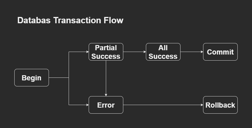 - Atomicity (원자성) : 트랜잭션의 부분 작업만 성공할 순 없다. 전체가 성공하거나, 전체가 실패해야 한다.