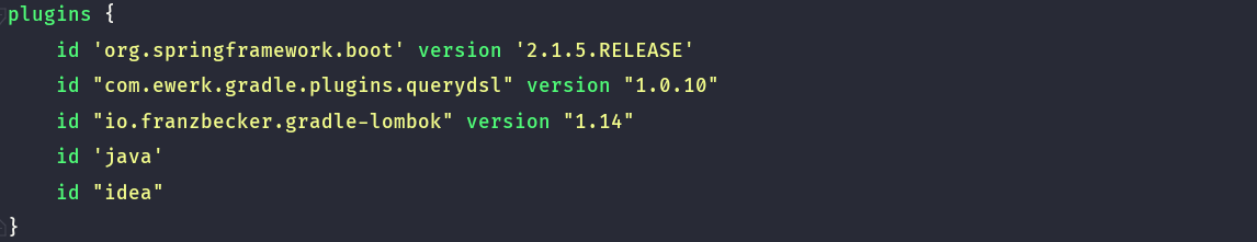 먼저 Querydsl 관련 플러그인을 다음과 같이 추가해줍니다.